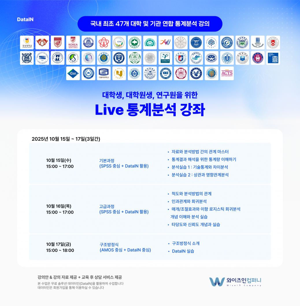 10월 Live 통계분석 강좌 안내(10.15~10.17)