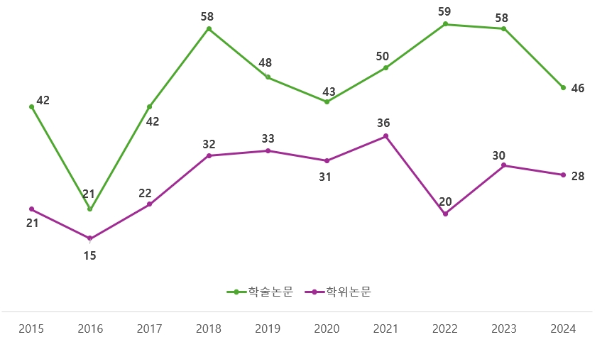 [최근 10년간 국내 학위, 학술 논문 발행 수]